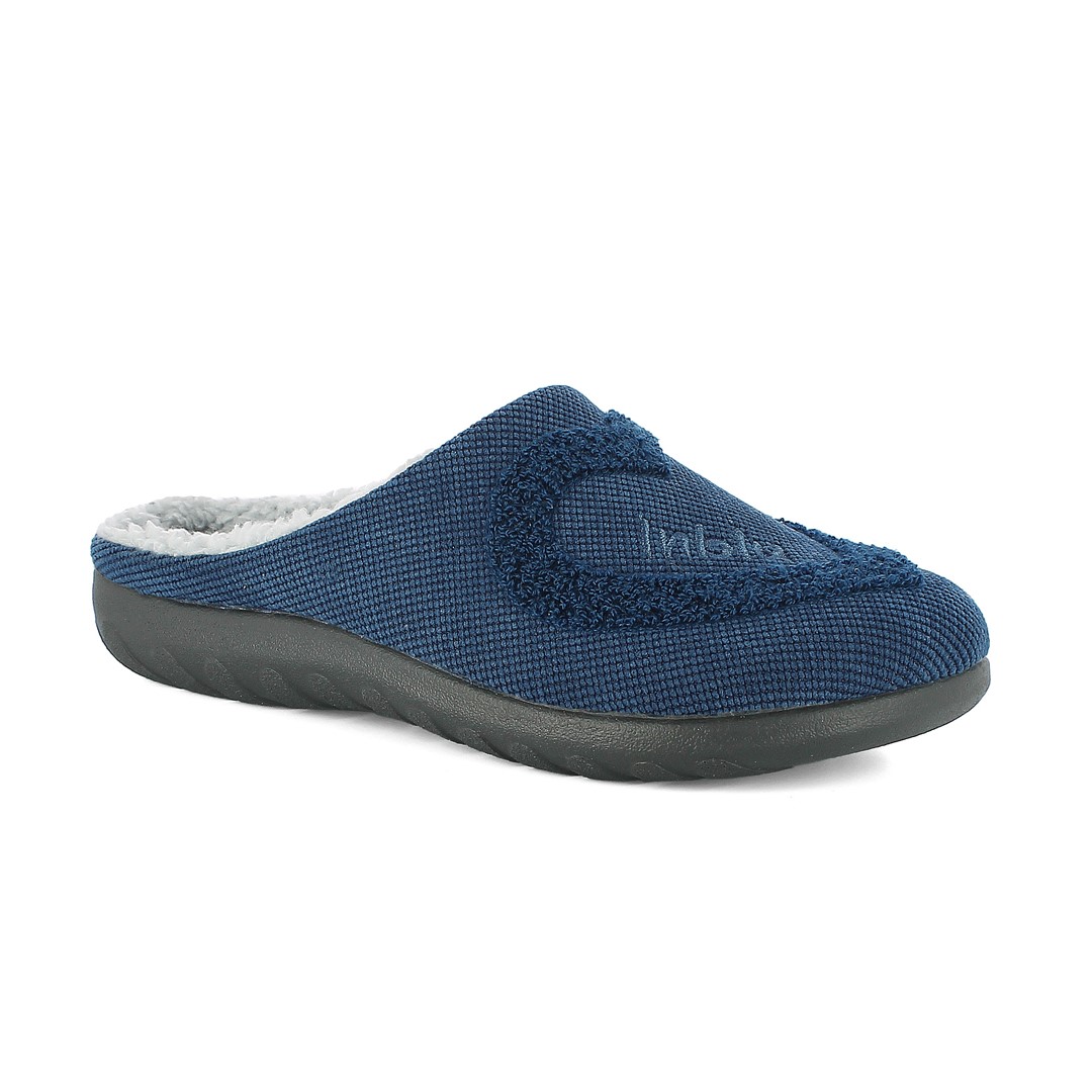 Pratiche pantofole in ecopelle semplici ed eleganti. Leggero tacco e plantare anatomico.