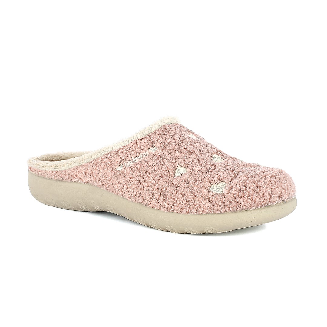 Pantofole con cuoricini ricamati. Suola leggera e resistente.