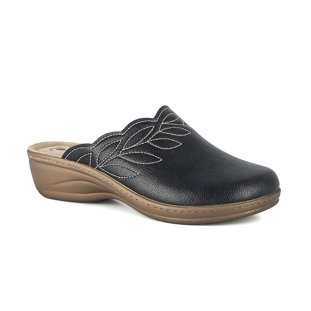 Comode pantofole con plantare in vera pelle ed original decoro con foglie.