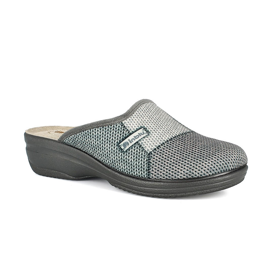 Pantofole con particolare decoro astratto e prafica fibbia. Ha un plantare anatomico in ecopelle.