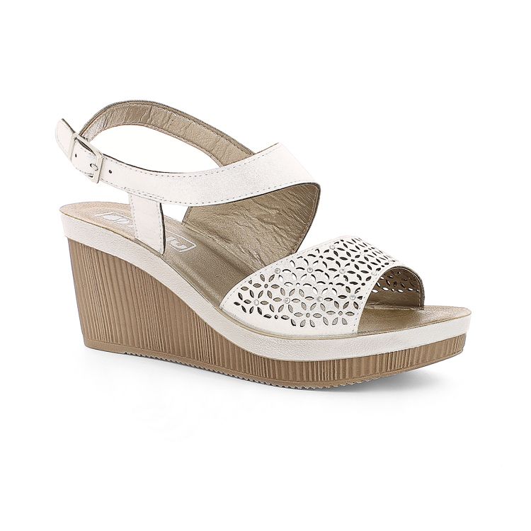 Sandali a zeppa con cinturino regolabile e suola sagomata per dare stabilità ad ogni passo. La tomaia è realizzata con un delicato decoro traforato a fantasia floreale.Adatti ad una passeggiata in centro città o per fare shopping, soprattutto se abbinata a pratici jeans o eleganti pantaloni a sigaretta.