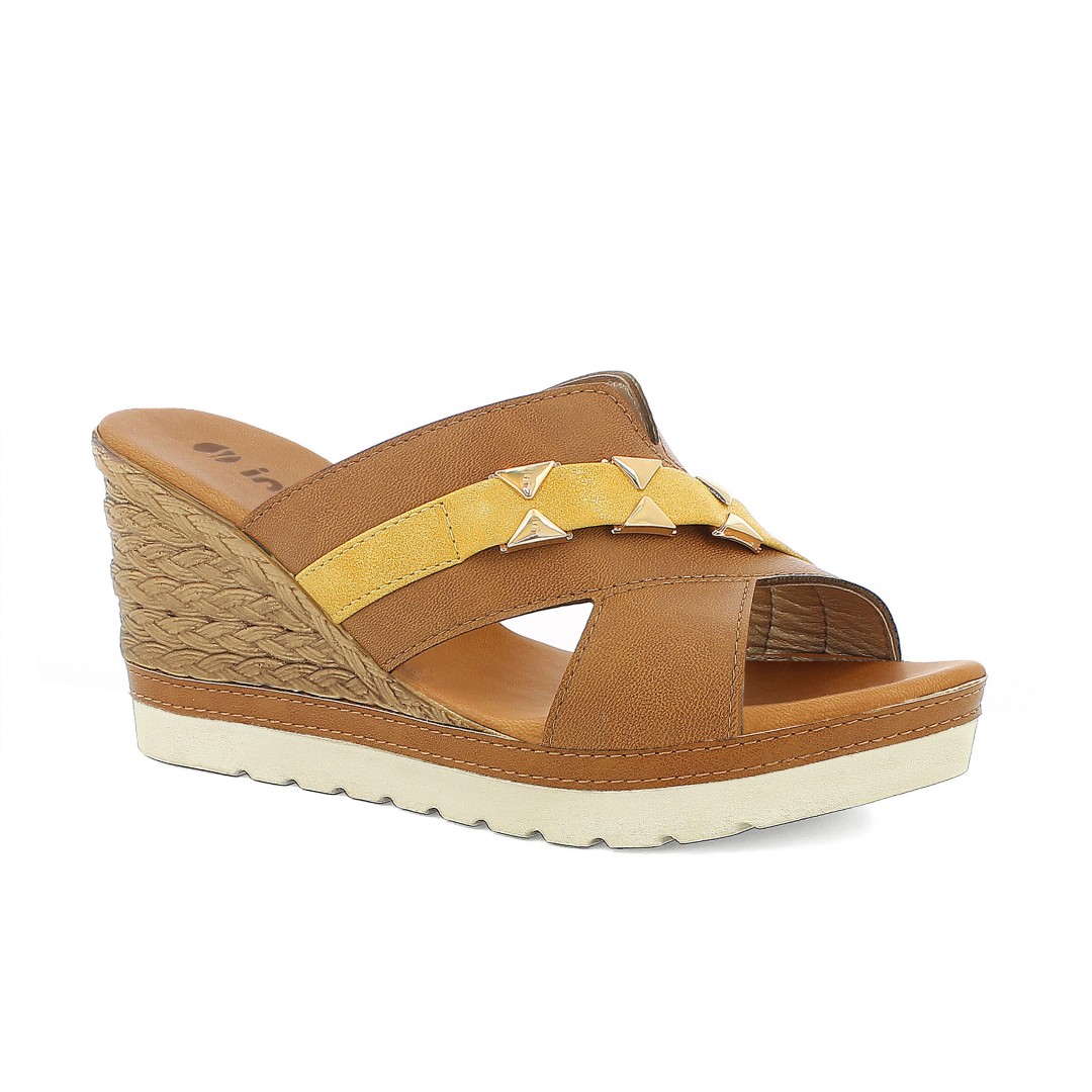 La zeppa con tacco 8,5 cm e' ingentilita da un plateau di 2,5 centimetri. Il plantare imbottito e' la dona la comodita' che ti permettera' di indossarle tutto il giorno senza fatica.La doppia fascia incrociata dona stabilita' . e' impreziosita da un'originale accessorio dorato, mentre la suola e' leggerissima.